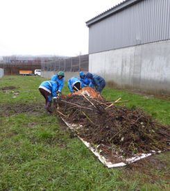 A tal fine, in una prima fase, nel marzo 2019, tutti i depositi di materiale sono stati rimossi e smaltiti e le more e gli alberi troppo cresciuti sono stati pacciamati e piantati in tutta l’area. Al confine con il giardino familiare, la siepe è stata prima tagliata per creare una siepe bassa ecologicamente preziosa con baie e un effetto di delimitazione dai giardini di proprietà. Qui, oltre ai decespugliatori e ai tagliasiepi, serviva la forza dei civili, che con picconi e trinciatrici rimuovevano dal terreno tutto ciò che non voleva.