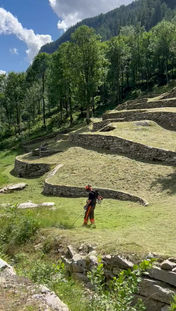 Valore aggiunto ecologico : i muri a secco che sostengono il terrazzo fungono da habitat per rettili e piccoli mammiferi e possono ospitare una varietà di piante specializzate. Di recente è stata osservata per la prima volta una vipera. I prati sono un habitat importante per insetti e uccelli. Abbiamo osservato, ad esempio, un codirossone. Nel 2024 abbiamo trovato diversi nidi di moscardino e ne abbiamo individuato uno che si muoveva tra i cespugli spinosi. Da allora, abbiamo effettuato una falciatura a mosaico in quest'area. Questo è stato il primo avvistamento di moscardino in Val Calanca dal 2013.