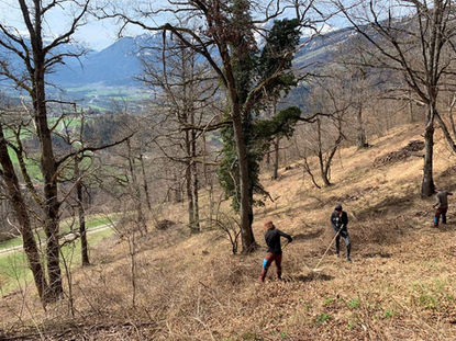 Su incarico dell’Ufficio foreste del Comune Domleschg, Naturnetz è intervenuta per garantire la sopravvivenza della selva e della sua qualità. Per quattro settimane, infatti, una squadra di 6 civilisti e un caposquadra di Naturnetz Ticino e Grigioni, hanno lavorato nell’area. Il loro compito: completare i lavori di taglio e di pulizia del suolo cominciati precedentemente da un’azienda forestale privata. Più precisamente, i ragazzi hanno tagliato i ricacci di alcune piante presenti nella selva. Hanno poi raccolto i rami tagliati, per poi deporli ai margini dell’area, dove un‘azienda esterna è venuta a ritirarli. Hanno anche ripulito il prato dalle foglie e dai piccoli rami che erano rimasti a giacere in seguito all’intervento dell’azienda forestale, che aveva invece tagliato i noccioli presenti.